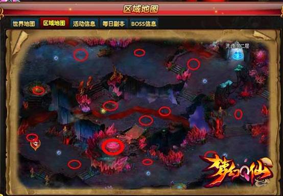 这里介绍些小窍门,在灵源洞三层,红点的位置就是刷怪的位置,粗线位置是剩5分钟结束的时候,刷BOSS的位置。仙友可以自行选择刷怪路线。那如果你不是强势队伍,怕被PK,那么你可以选择风蚀之地,不过风蚀之地是没有BOSS的,想必灵源三层怪物也弱一些。