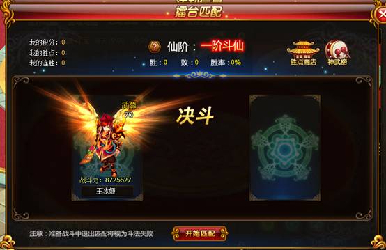 在击败对手后,即可获得胜点以及神武积分,胜点可兑换仅本活动产出的PK神器—神武护符,神武积分越高者本次活动排名就越高。保证你每次都能击败对手,神武擂主终将就是你的,守护天元大陆将以你为尊。