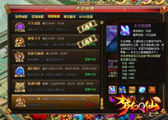 仅在每周日才可以报名参加的【天元之战】,将在跨服大陆决出最强的修仙者,谁是天元大陆最强者?谁又能在混战当中一骑当千、会当天元之巅,一览众山小?万人跨服的热血PK,极致爽快的战斗体验,参与天元之战,挑战强者,还有机会获得太古神兽玄光琉璃!三界唯一,共天元之巅者俾睨天下!