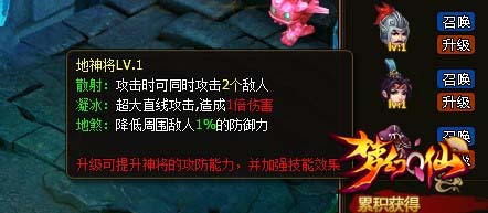 通过击杀妖魔,玩家会获得妖魂点数,借此来召唤神将降临,助自己一臂之力!每位玩家只能同时召唤两个不同种类的神将,三种不同的神将各司其职、各具特色,合理的分配召唤神将可起到事半功倍的效果!