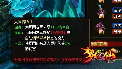 人神将是个可爱的妹子,她将负责回复我方的生命值,移除所有异常状态,并且自带吸血光环。