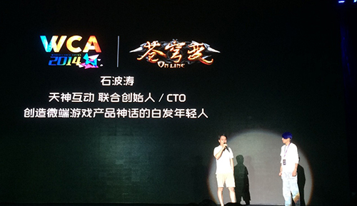 会上,被称为创造微端游戏产品神话的白发年轻人——天神互动副总裁石波涛不仅表达了对成为WCA正式比赛项目的激动心情,并表示为了让参赛选手获得最佳的竞技体验,将为WCA2014开发赛事专用的版本与服务器。并且,希望WCA通过《苍穹变》这款游戏更全民化,让大家共同见证国内游戏事业的进步;也希望通过WCA为中国本土游戏产品开拓更广泛的发展平台。