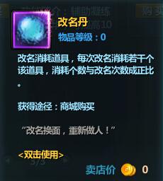 2、改名功能:商城中增加【改名丹】道具,使用可以修改玩家角色名字