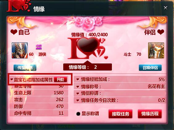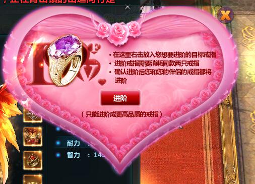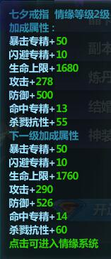 游戏中已经结婚并带有蓝宝石的玩家,可以在情缘界面将蓝宝石戒指升阶为【七夕戒指】