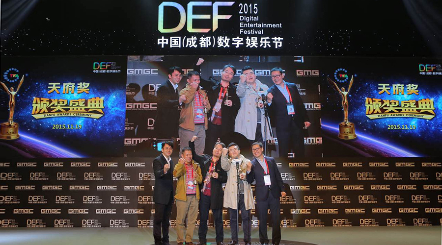 北京天神互动科技有限公司CEO石波涛(中)领取移动游戏制作人奖